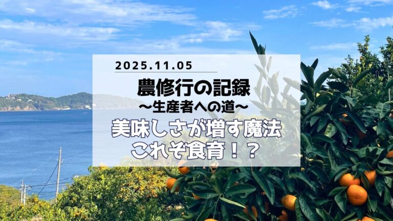 ホーム農園日誌✍農園日誌✍オーナー制度2025年度オーナー様へ農修行農園のこと農修行で実感! 手間かけるほど美味しい『食の魔法』これぞ食育?農修行愛媛大学柑橘産業人材育成プログラム5周年記念シンポジウムのディスカッション参加(2025年10月17日)お客様交流お知らせ2025シーズンのわくわく計画農修行農修行記録-「割れみかん」お客様交流ドライフルーツ<公式LINE特典>ドライ果実のお得なモニター販売開始農修行まさか自分が、ハチで救急車を呼ぶなんて。人生で一番怖かった話お知らせドライフルーツ甘夏・ニューサマー5月の販売ご案内ドライフルーツ物語ドライ果実第2弾の購入希望者募集🙌農修行農修行記録-2025/04/14ドライフルーツドライフルーツ物語②農修行農修行記録-2025/04/11私のこと自分らしく生きること農修行農修行記録-2025/04/04湘南ゴールド湘南ゴールド再販のご案内ドライフルーツドライフルーツ物語①湘南ゴールド湘南ゴールドへの質問について湘南ゴールド2025年湘南ゴールド販売案内畑を継ぐ為に会社退職と兼業農家への決意温州みかん2025みかん品評会テレビ出演農園風景TVerで畑が見れます😍農園のこと農家のこと父の言葉が新聞に掲載されましたオーナー制度2024年度オーナー様へフルーツ狩り2024年度シーズン開始!会員制プラン2024定期便プラン準備中畑を継ぐ為にワクワクした話畑を継ぐ為に柑橘講座初日②自己分析畑を継ぐ為に柑橘講座初日①畑を継ぐ為にはじめの一歩畑を継ぐ為に会社員を続ける理由キャンペーンLINE抽選の裏側不知火湘南ゴールド湘南ゴールド&シラヌイ収穫畑を継ぐ為に2024みかん品評会畑を継ぐ為に新年のご挨拶〈2024〉温州みかん冬の配送承りますフルーツ狩り2023.11.23 再会日和フルーツ狩り2023.11シーズン開始テレビ出演2022.11.26「王様のブランチ」オーナー制度2023年度オーナー様へお客様交流2023.01YouTube配信に温州みかん2023.01みかん品評会キウイの剪定2023.01娘も一緒に剪定キウイキウイの剪定畑を継ぐ為に2023.01実践「剪定」はるか2023.01初「はるか」キウイキウイの剪定畑を継ぐ為に2023.01キウイ剪定講習畑を継ぐ為に新年のご挨拶〈2023〉オーナー制度2022年度オーナー様へフルーツ狩り2022じゃらんに掲載♪農園風景2022年9月の畑キャンペーンアンケート実施12›